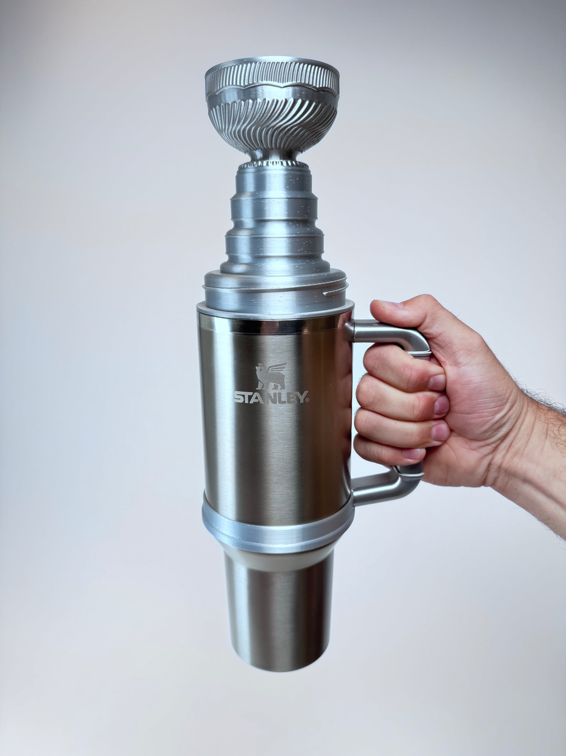 Introducing, the Stanley Cup Stanley Cup. Two juggernauts clearly meant to be united. You can drink out of the Stanley cup, or the Stanley Cup. You can flip the Stanley Cup over, and store it in the Stanley cup. Print one for yourself, or if you don’t have a 3D printer we can print one for you.